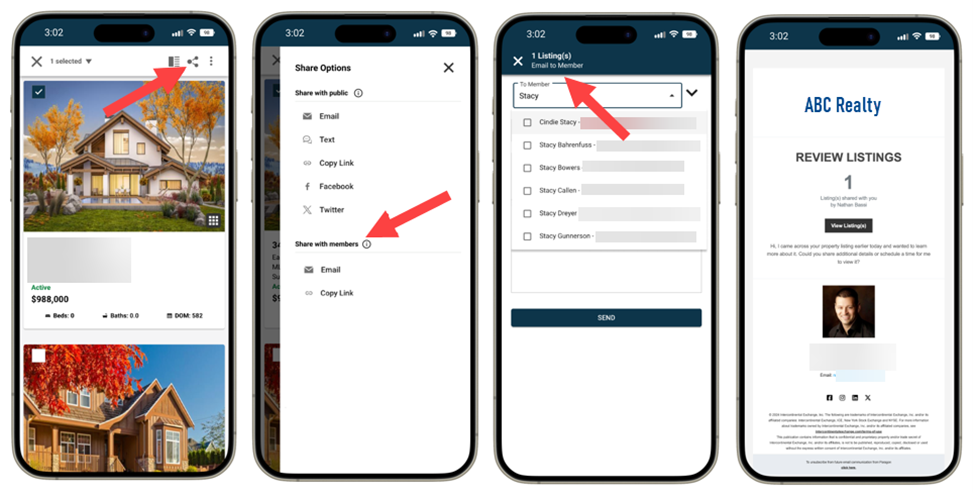 This option uses CollabLink to share listings with the same public-safe options as before. It includes a reminder to users that it only displays publicly permitted fields.