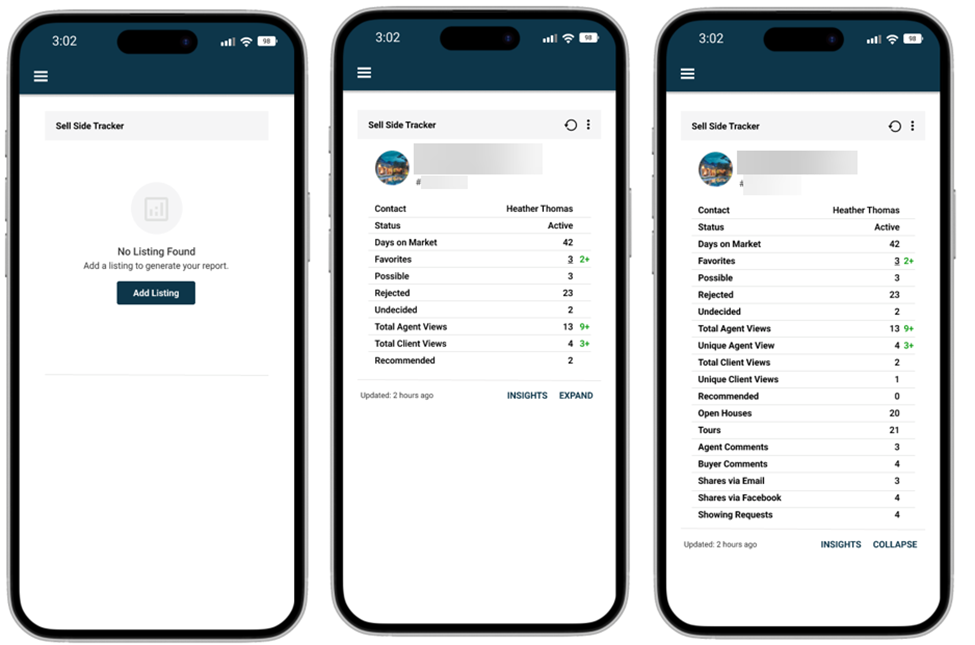 • Quick Access Buttons: Launch the listing insights report, edit option, and media gallery directly from the thumbnail photo