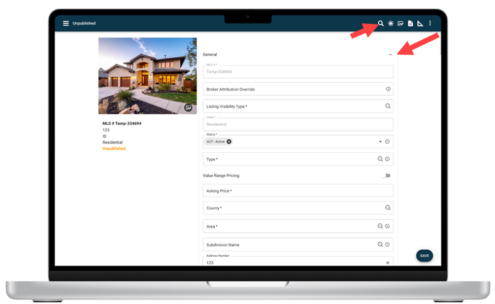 The listing form now expands all containers automatically. Use the search bar to move up specific fields to the top of the page.